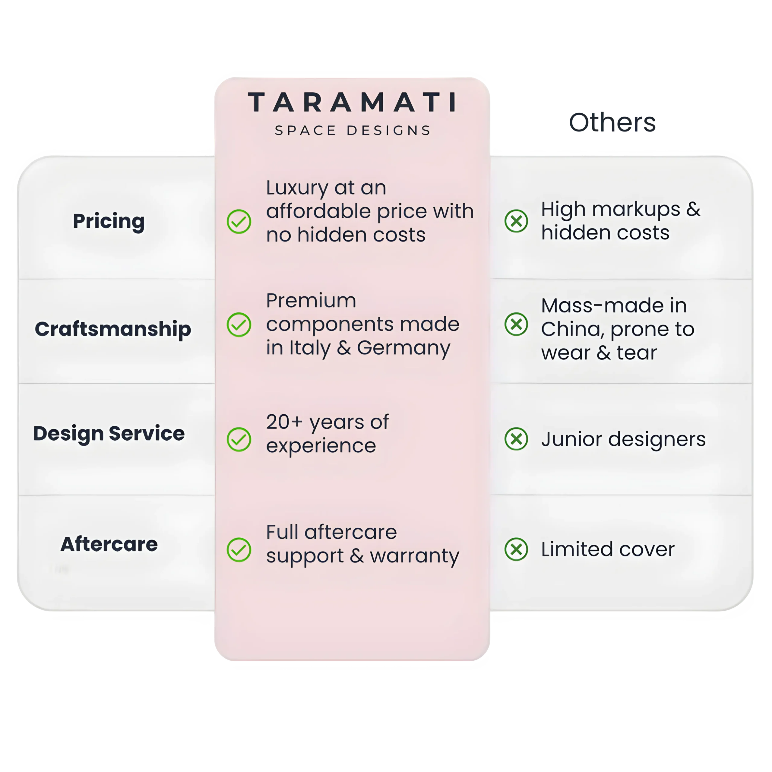 At Taramati Space Designs, we specialise in bespoke kitchens, calming bedrooms, and spa-inspired bathrooms, crafted with elegance, precision, and timeless style.